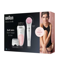 Silk-épil Beauty Set 5 de Braun, le coffret premiers pas épilation pour le visage et le corps. Épile, rase, tond, nettoie. L’épilateur électrique retire des poils 4 fois plus courts que ce que la cire peut attraper pour une peau douce jusqu’à 4 semaines. Comprend un accessoire rasoir et tondeuse pour l’épilation des zones sensibles. FaceSpa avec brosse sensible.