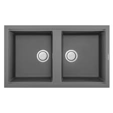 Évier 2 bacsGrisMesure (mm) : 860 x 510Encastrement (mm) : 840 x 480Bases (mm) : 900Profondeur du bac (mm) : 200Profondeur du second bac (mm) 200RéversibilitéInstallations standard