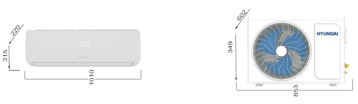 Dimension Unité intérieure (LxHxP) : 1010 x 315 x 220 mm, Unité Extérieure : 853 x 349 x 602 mm