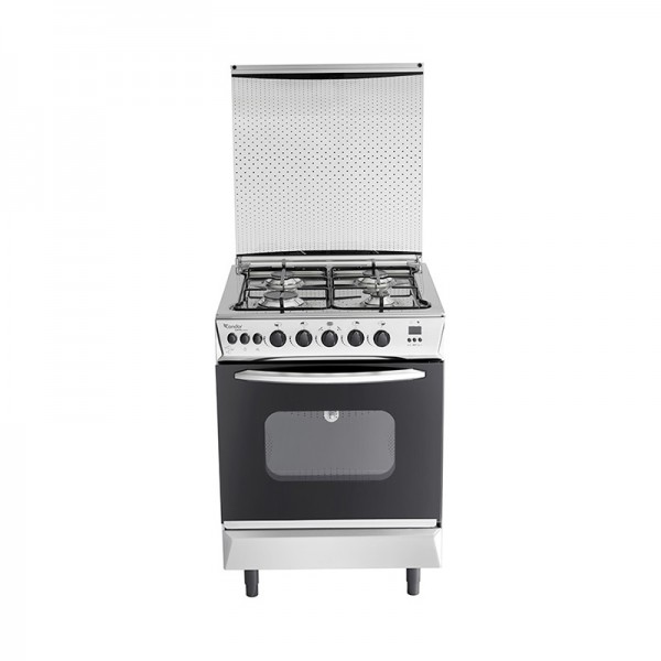 Nombre de feux Table : 4 - Volume Four : 77 L - Table en Inox - Pieds Réglable - Minuterie Mécanique - Brûleurs à Bec - Port casserole émaillé - Couvres brûleurs émaillés - Porte thermos abattante - Porte à Double vitrage - Four et grill à GAZ - Système de sécurité coupe-gaz automatique - Four et grill - Poids : 41KG - Lampe & tourne broche - Dimensions : 60x60x82cm - Couleur : Gris - Garantie 3 ans