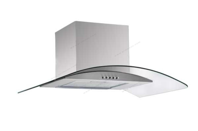 Hotte oval, Débit d'air 650m3/h, 2filtres charbon, 90 cm, Inox&vitre