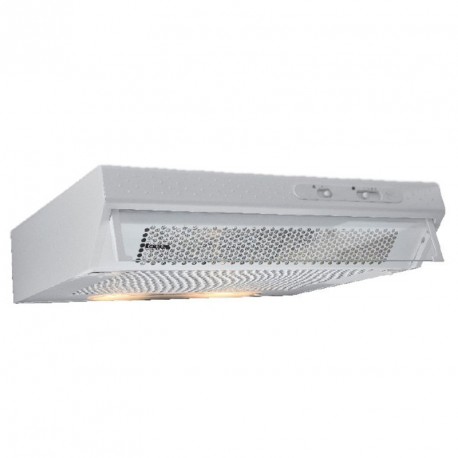 F 601WHotte Standard Blanc 60 CM3 vitessesBoutonsDébit : 350 m3/hEclairage : 2 lampe x 40WFiltre aluminium lavableFiltre anti-odeur en charbon OptionnelClasse énergétique ADiamètre évacuation : 125 mm