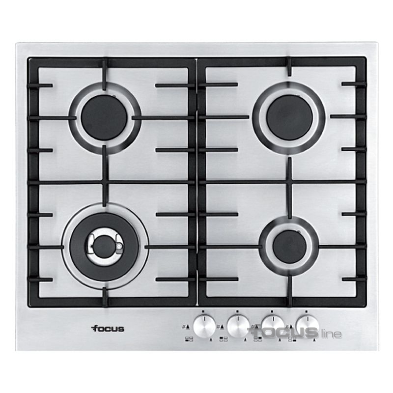 Inox 60 CM4 Bruleurs à gaz, l’un double CouronnesFlamme stabiliséeGrilles et chapeaux de brûleurs en fonteAllumage AutomatiqueCommandes frontales