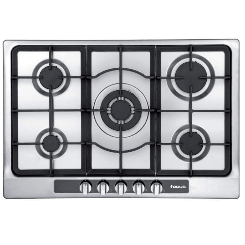 Inox 75 CM5 Bruleurs à gaz, l’un Triple CouronnesFlamme stabiliséeGrilles et chapeaux de brûleurs en fonteAllumage AutomatiqueCommandes frontales