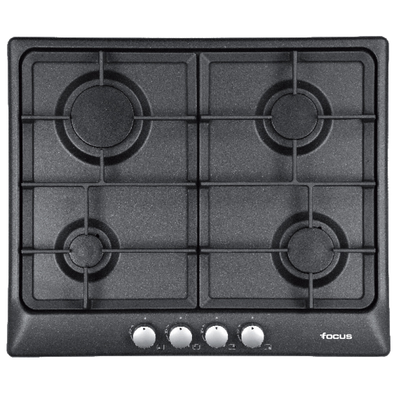 Noir 60 CM4 Bruleurs à gazFlamme stabiliséeGrilles et chapeaux de brûleurs en fonteAllumage AutomatiqueCommandes frontales