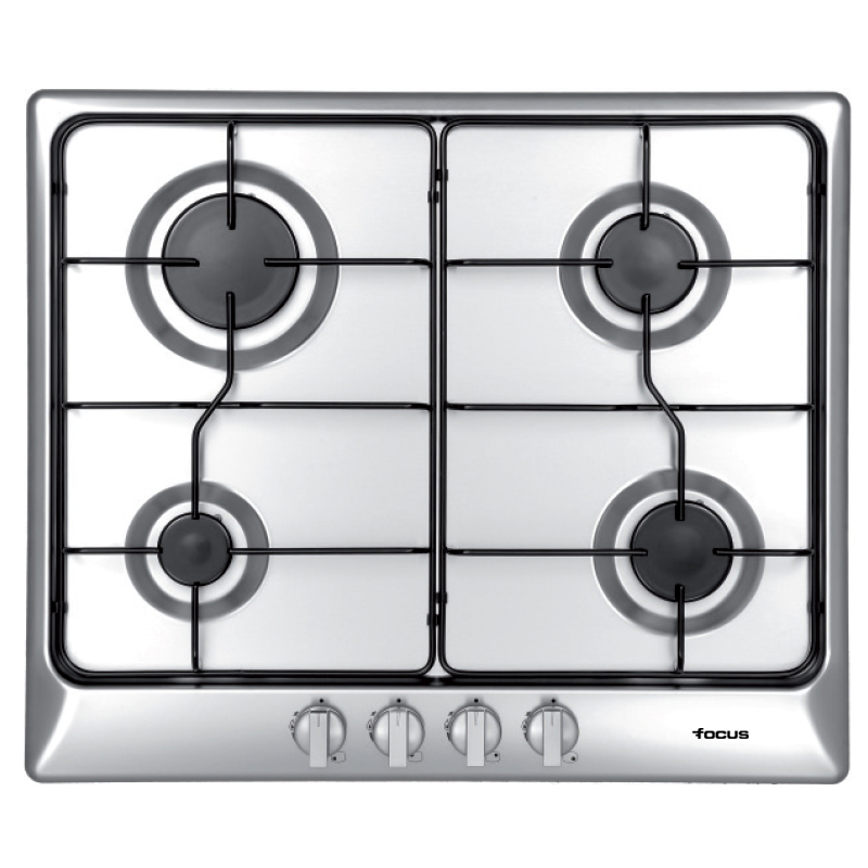 Inox 60 CM4 Bruleurs à gazFlamme stabiliséeGrilles et chapeaux de brûleurs émailléesAllumage AutomatiqueCommandes frontales