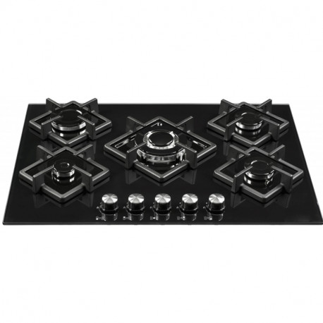 Plaque de Cuisson FRANCO - RevêtemenT: Vitro - Type de Table: à Gaz - Largeur: 70 cm - Nombre de Foyers: 5 Foyers - Allumage électronique avec une main avec feux rapide - Support en fente - Brûleurs SABAF - Couleur: Noir - Garantie: 2 ans
