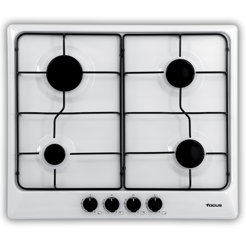 Blanc 60 CM4 Bruleurs à gazFlamme stabiliséeGrilles et chapeaux de brûleurs émailléesAllumage AutomatiqueCommandes frontales