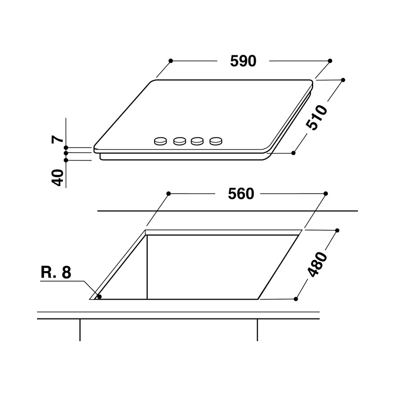 Plaque De Cuisson Encastrable Premium AP640.XS03 4 Feux 60Cm - Inox