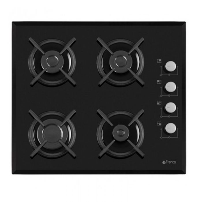 Plaque De Cuisson FRANCO 60344-BF - Type de plaque: Gaz - Largeur: 60 cm - Nombre de Foyers: 4 Foyers - Grille en fonte - Revêtement: Vitro - Allumage électronique avec une main - Couleur: Noir - Garantie: 2 ans