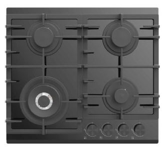 plaque a gaz en verre noir 60cm4 feux a Gaz DONT 1allumage intégré grilles en fonte sécurité thermocouple
