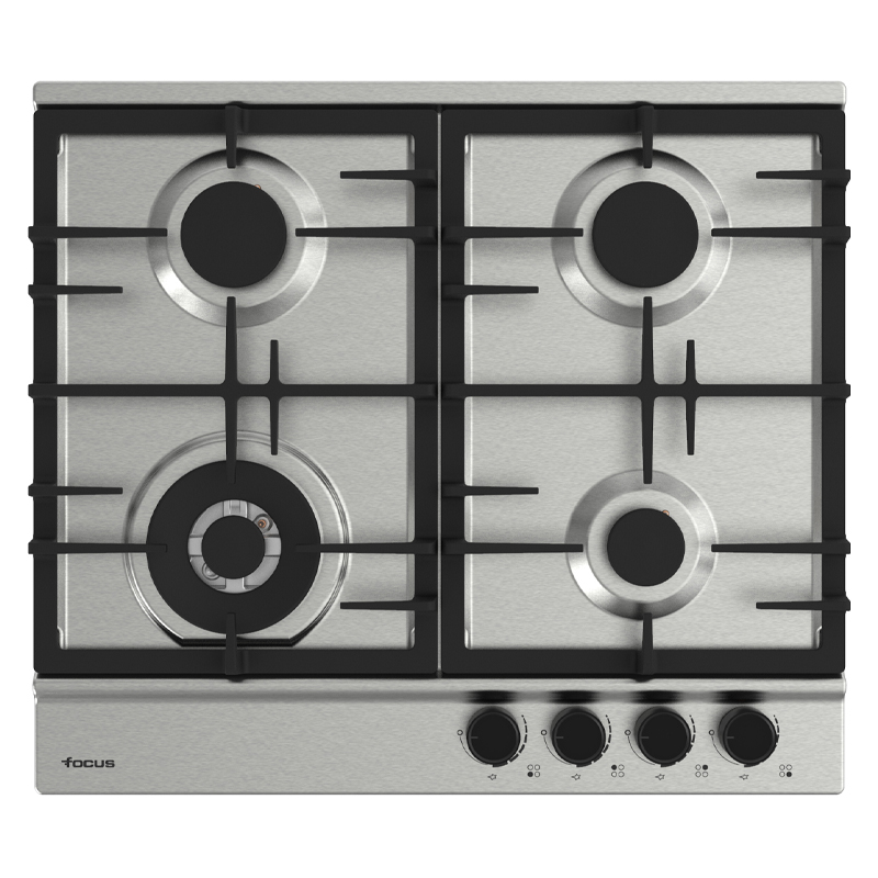 F 8004XSPLAQUESInox 60 cm4 Brûleurs à gaz dont un triple couronnesFlamme stabiliséeGrilles et chapeaux de brûleurs en fonteAllumage automatiqueSécurité thermocouple sur chaque brûleur