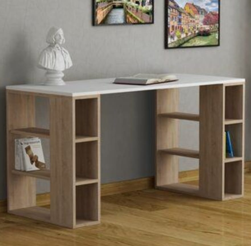 Bureau avec 12 Étagères - Design Pratique et Élégant