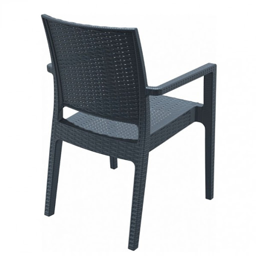 Fauteuil empilable en résine robuste et renforcé en fibre de verre. Il est protégé contre les UV et ne se décolore pas pour une utilisation intérieure et extérieure.