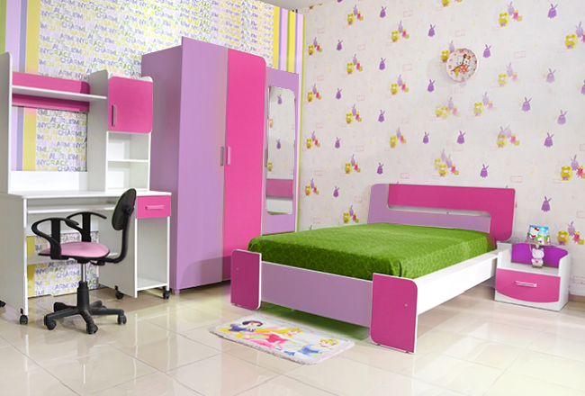 Chambre à coucher enfant NOUR( Lit + Table de nuit + Penderie 3P)