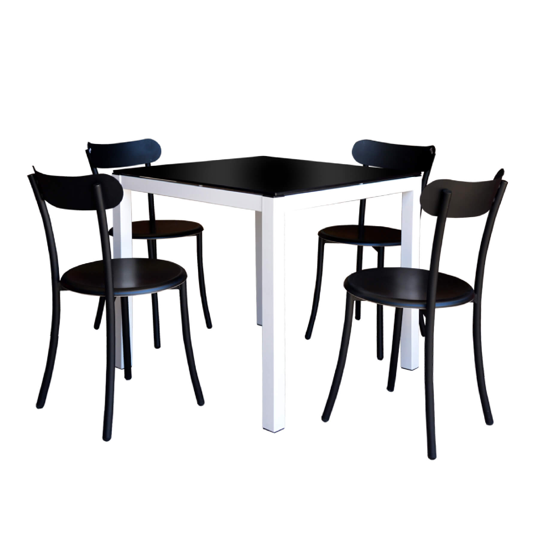 TABLE SERENA TOP EN VERRE 80*80cm + 4 Chaise Confort