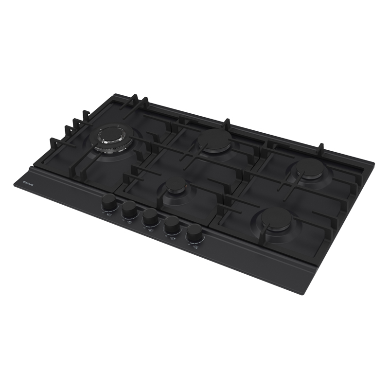 F 8017BSPLAQUESNoir 90 cm5 Brûleurs à gaz dont un triple couronnesFlamme stabiliséeGrilles et chapeaux de brûleurs en fonteAllumage automatiqueSécurité thermocouple sur chaque brûleur
